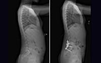 Dr. Vitale and Dr. Oh collaborated on a surgery to correct progressive congenital scoliosis with a L5 hemivertebra. Together, they performed a hemivertebrectomy and posterior spinal fusion to remove the vertebra and correct the patient’s spinal alignment.